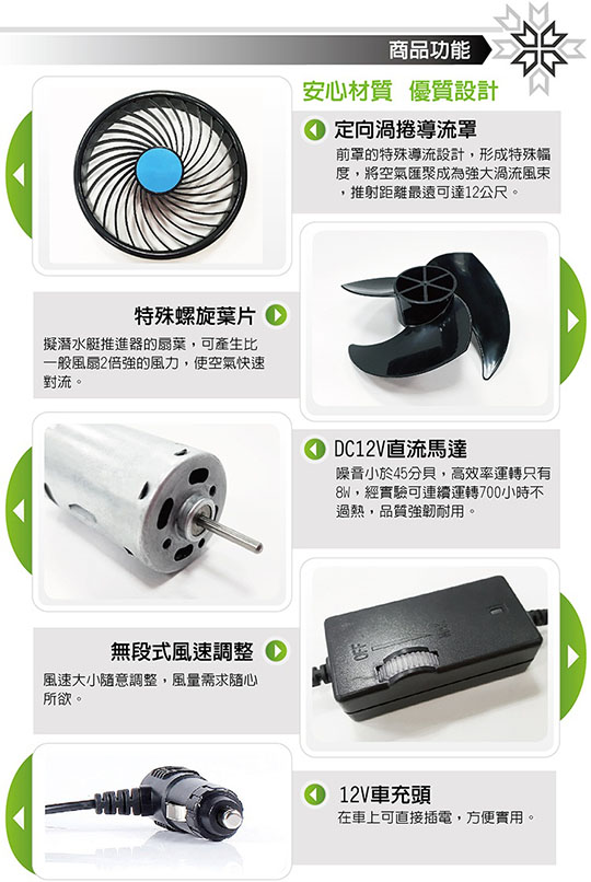 【酷樂 車用DC 12V 5吋渦流循環扇】