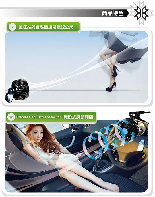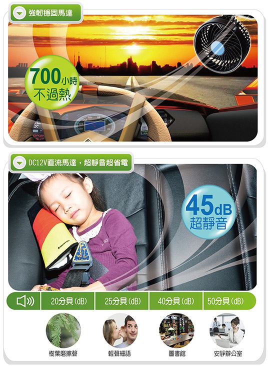 輕鬆夾在車內!循環對流不悶熱,讓後座也能吹到涼爽的風~運作超靜音,可調整風力,省電高效率,馬達穩固又耐用喔!