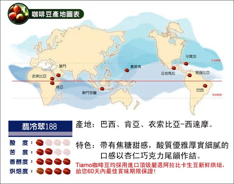 Tiamo 翡冷翠188 精選咖啡豆-一磅(450g) HL0612![]()